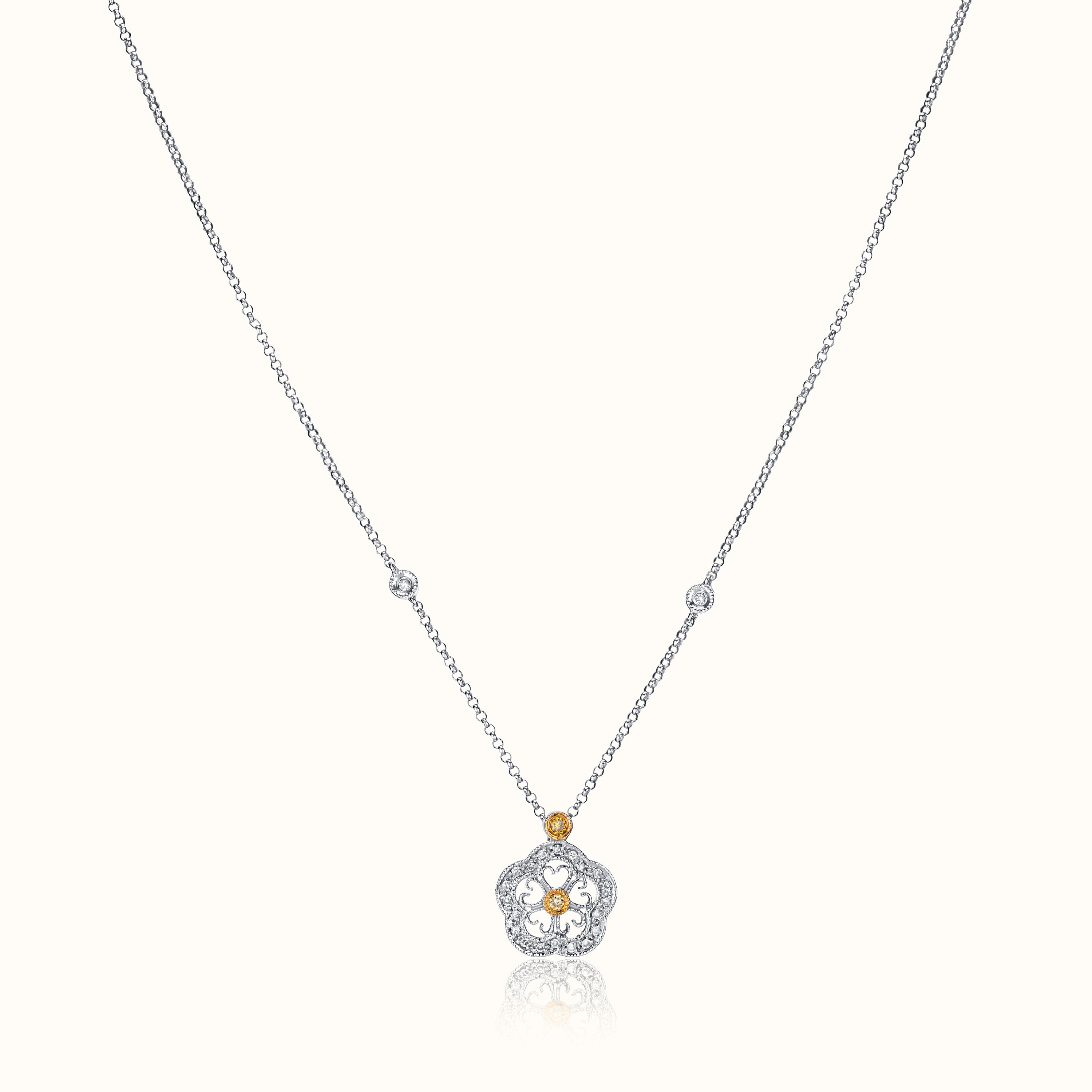 A delicate diamond necklace crafted in a refined mix of 18K white and yellow gold. Designed for subtle sparkle and effortless layering.